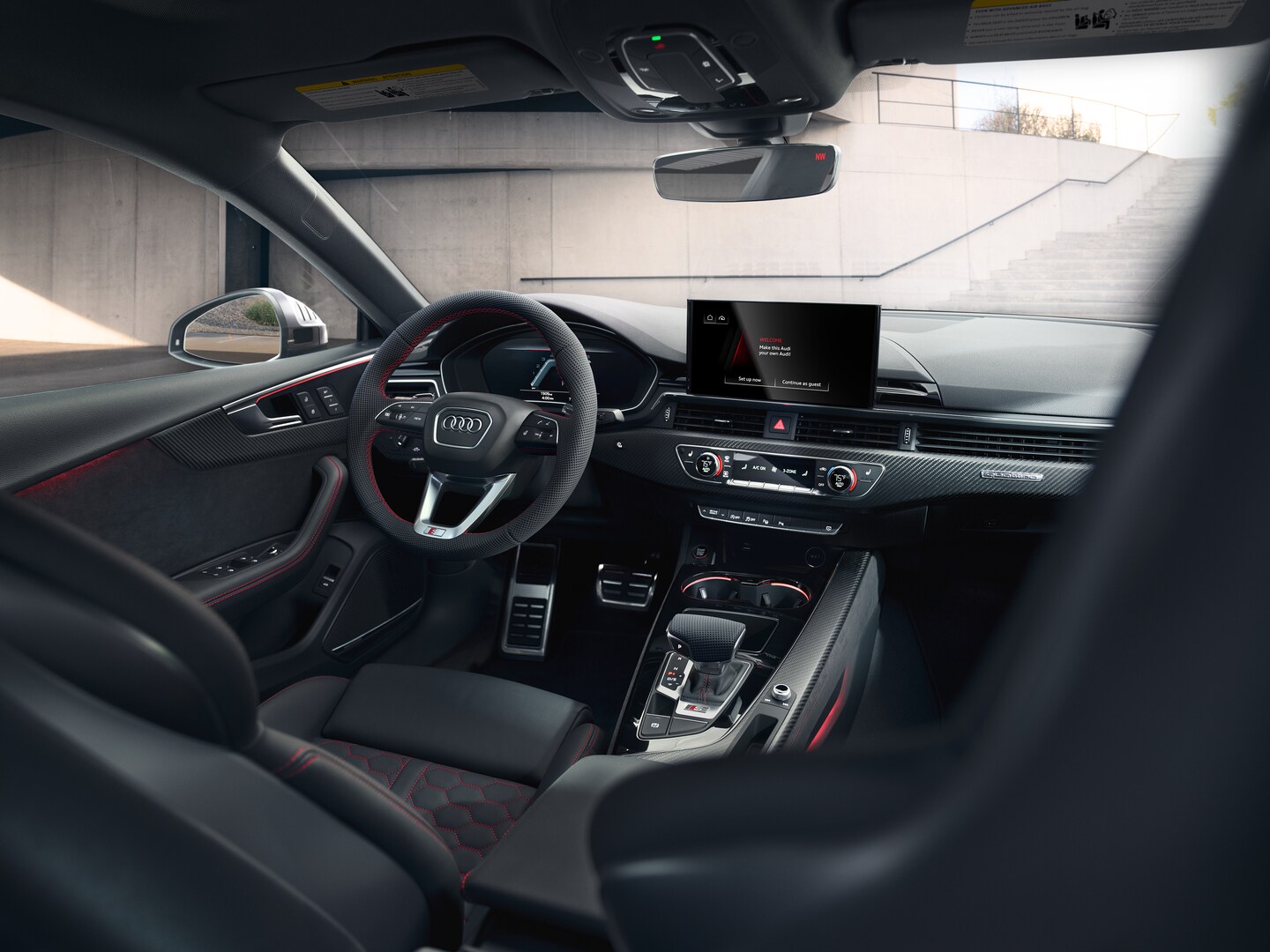 Inside the 2024 Audi A5, you are surrounded by luxury and comfort at every turn. For one, the 2024 Audi A5 features leather upholstery with an available panoramic sunroof on the Sportback model. You can set the comfort for the drive with three-zone climate control. Further, you can set the mood for the drive with ambient interior lighting.